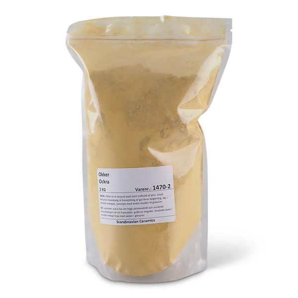 SiO2 AI2O3 Fe2O3. (2kg-5kg-20kg)Lerjorden ockra har ett högt järninnehåll och används huvudsakligen till att framställa gulbrun engobe. Används också i mindre mängd ihop med oxider i glasyrer.