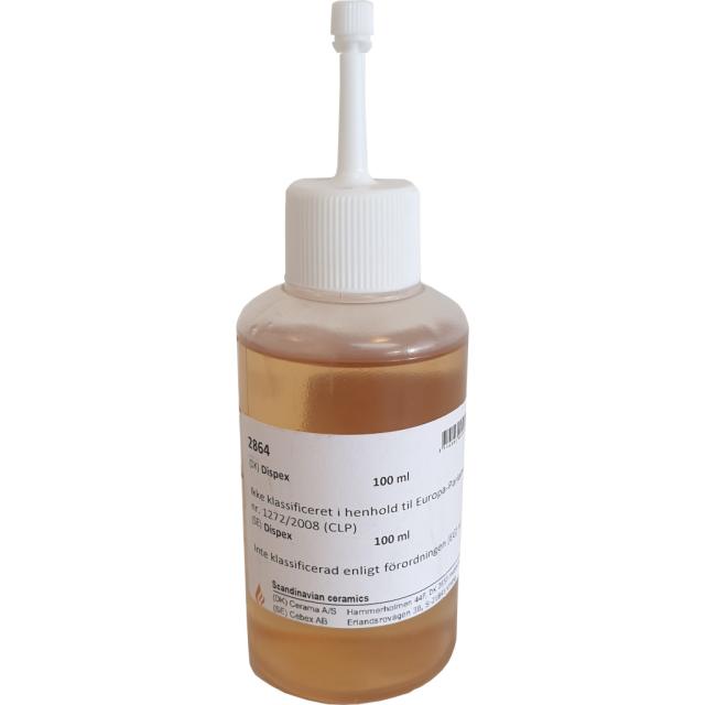 Dispex är ett dispergeringsmedel för gjutleror.Gjutlera som levereras i pulverform skall blandas med vatten (regnvatten eller annat mjukt vatten är en fördel men inte tvingande nödvändigt) och dispergeringsmedel för att ställa slamman (färdigblandad gjutlera) till rätt konsistens. Med endast några få droppar kan man ställa om en tjock slamma till en tunn och mer hällbar konsisens, för snabbare och mer effektiv gjutning.Efter att vatten, Dispex och pulverlera blandats bör blandningen stå och dra något dygn. Därefter ska slamman röras om försiktigt så att man inte blandar ner luft. När vi levererar slammor så har dispergeringsmedel redan tillförts och slamman är därför färdig att användas. Se våra blandningsrecept för mer info.